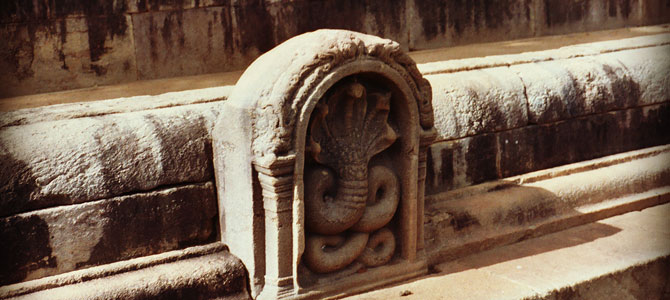The finest of the carved stone figures protecting gateways (guard stones) at Anuradhapura is at the pavilion of Ratna Prasada. Nearby, at the Queen’s Pavilion, is a superbly crafted semi-circular stone moonstone set at the base of the stairs.